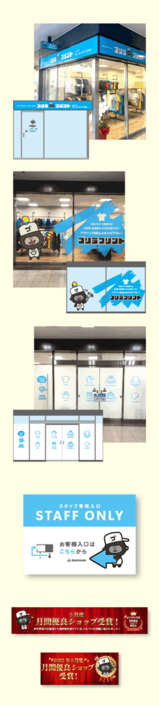 オリジナルキャラクターの作成から、ロゴデザイン、名刺、チラシ、店舗デザインまで作成いたしました。
